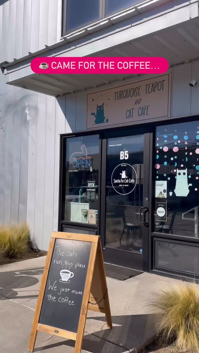 Santa Fe Cat Cafe is a welcoming third space where people can slow down, connect, and spend time with adoptable cats in a stress-free environment. Our lounge is thoughtfully designed to prioritize the wellbeing of the cats while giving guests a memorable, meaningful experience.